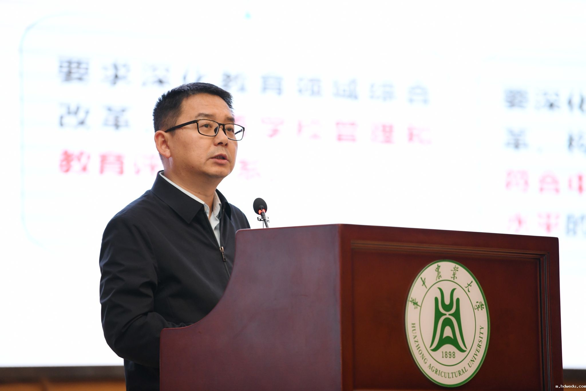 严建兵指出,审核评估评建工作既是教育强国建设的时代之需,也是一流大学创建的助推之举,要充分认识这项工作在服务高等教育高质量发展和学校教育教学质量全面提升中的重要意义。他希望以此次本科教育教学审核评估评建工作为契机,强化“学生中心、产出导向、持续改进”,深化“三全育人、五育融通、师生融乐、全面发展”,促进学校立德树人机制更完善,教育教学改革更系统,质量保障体系更优效,办学水平更卓越,办学特色更鲜明。一是解放思想,教育科技人才一体化推进。要用高水平科学研究支撑高质量人才培养,通过产学研深度融合,以应用场景驱动一体推进教育发展、科技创新和人才培养。二是数智赋能,建设高质量教育教学资源。要推动教育教学资源数字化,教育教学场景数智化,提升师生数智素养,以AI赋能教育教学改革。三是融创致新,推进人才培养改革。高质量做好2025版本科人才培养方案修订,建好生物科学拔尖计划2.0基地、智慧农业书院、张之洞班、华农林肯学院等本科人才培养模式改革示范区。四是以质图强,提升内部质量保障能力。以新质量观引领学校高质量内涵式发展,形成人人事事时时处处皆育人氛围。