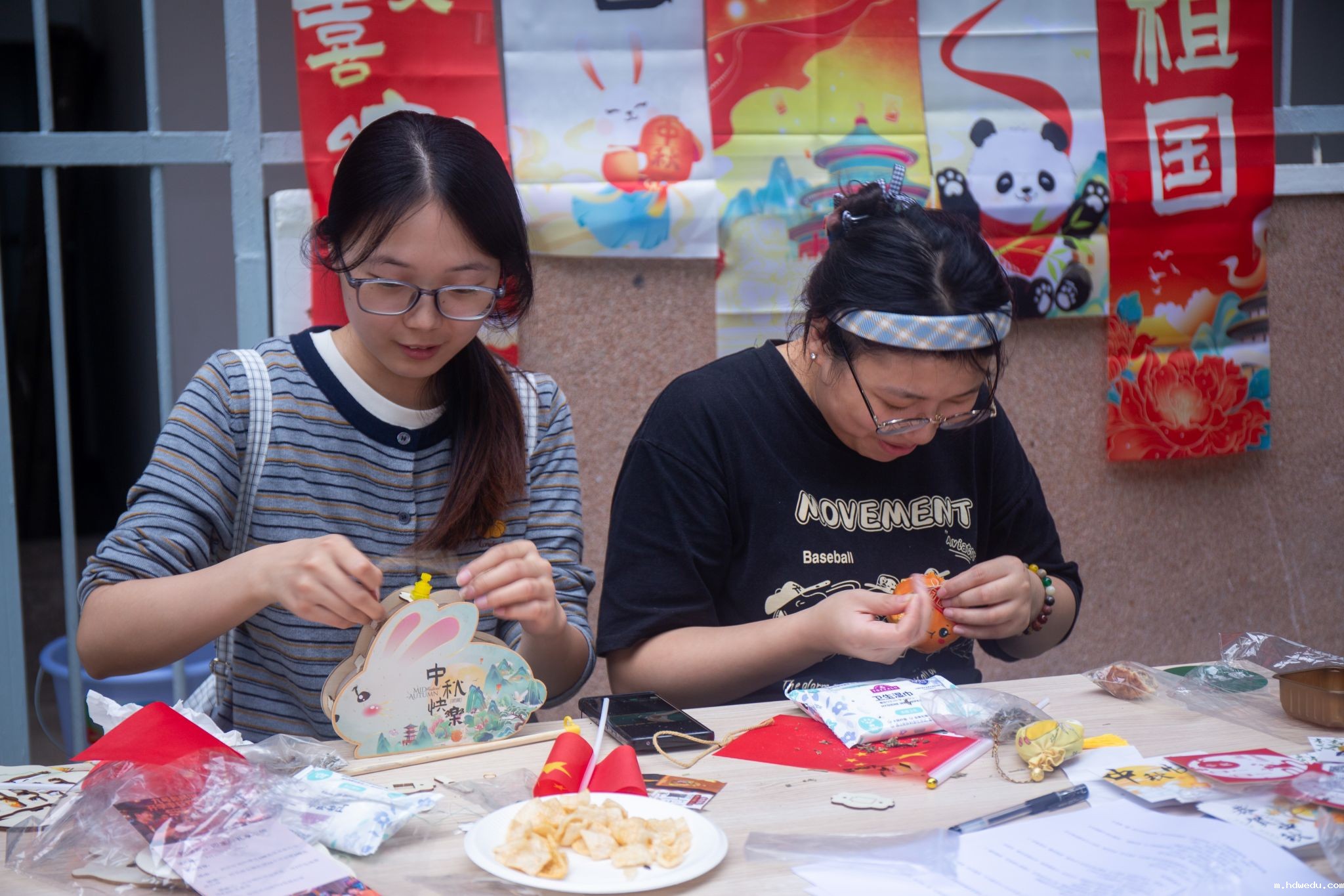 南湖新闻网讯(学通社记者 程雨婷 通讯员 姜莹)9月25日下午,宿管中心在博园、荟园宿舍区组织开展“喜迎国庆、情暖狮山”双节主题活动。宿管人员与同学们欢聚一堂,共同制作花灯、缝制香包、品尝月饼,现场气氛温馨热烈。